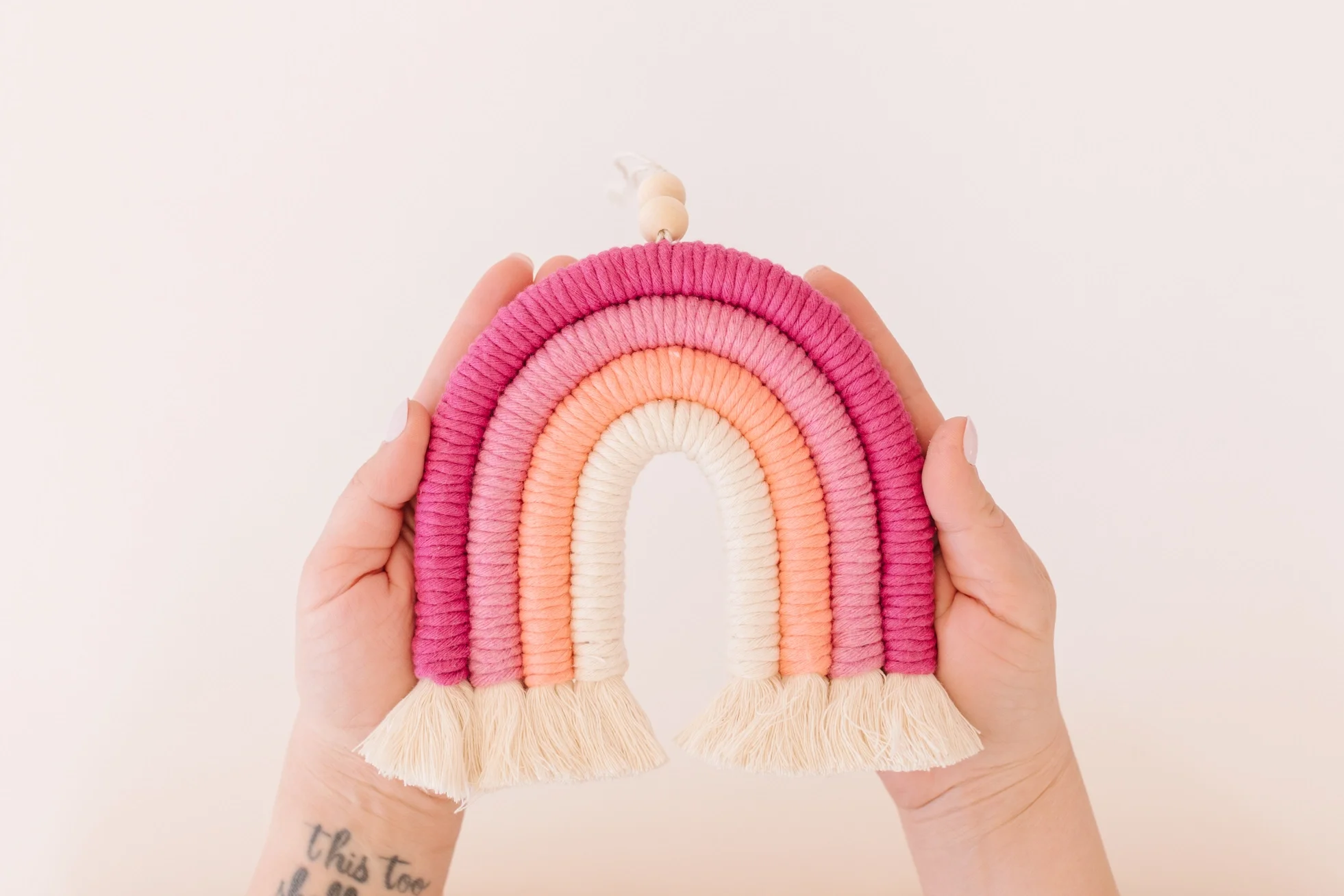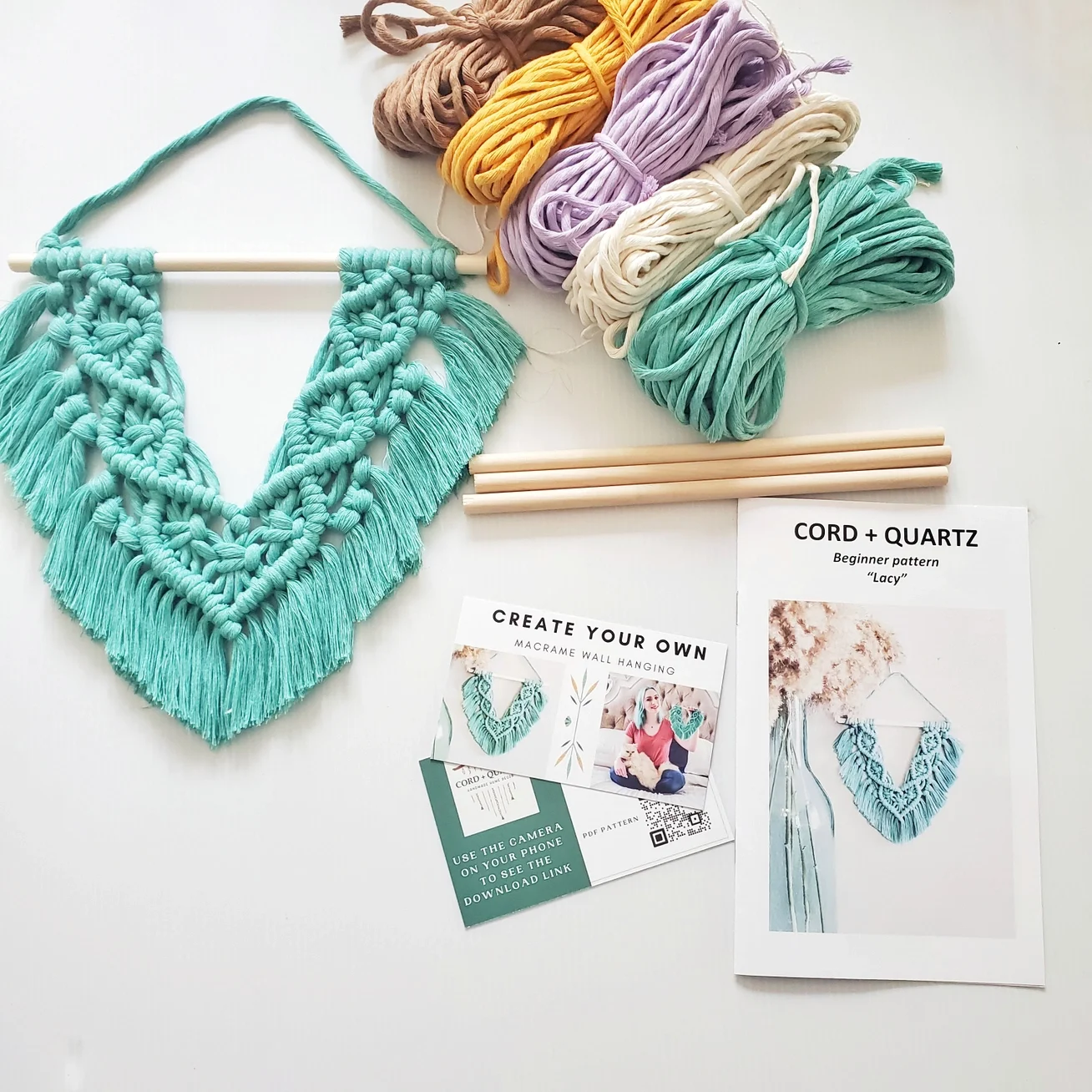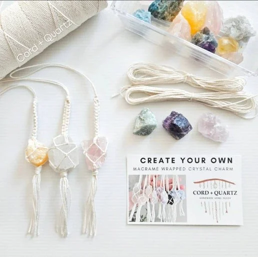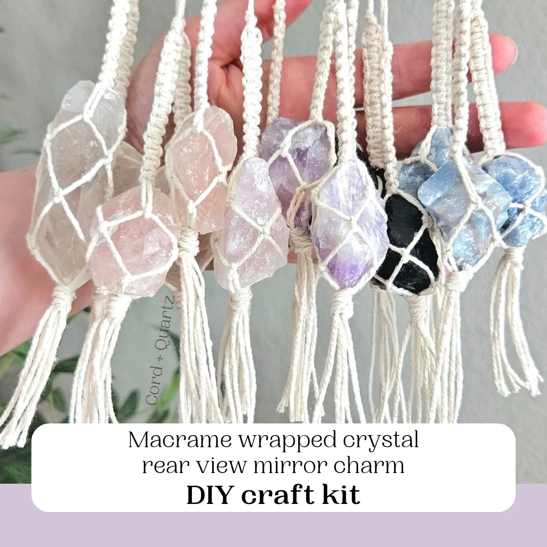 Macrame Wrapped Crystal rear view mirror DIY craft kit.